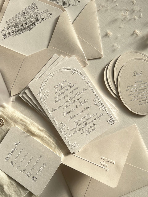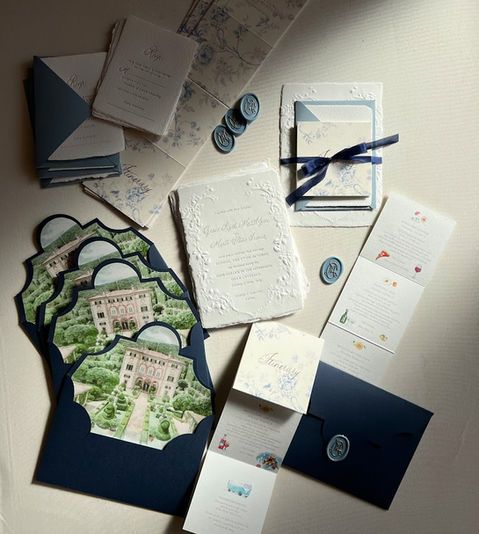 Upon approval, we move into production. Over 4 to 6 weeks, each piece is meticulously crafted and hand-assembled—from calligraphy to wax seals—ensuring the final ensemble meets our studio’s standards of excellence.